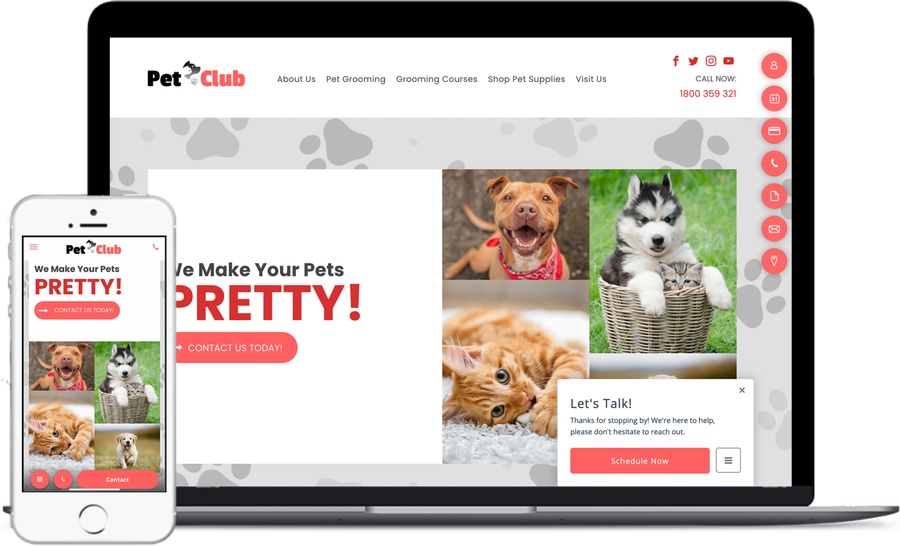 Contact Form, Follow Us on Social, Submit Deposit, Leave a Review.